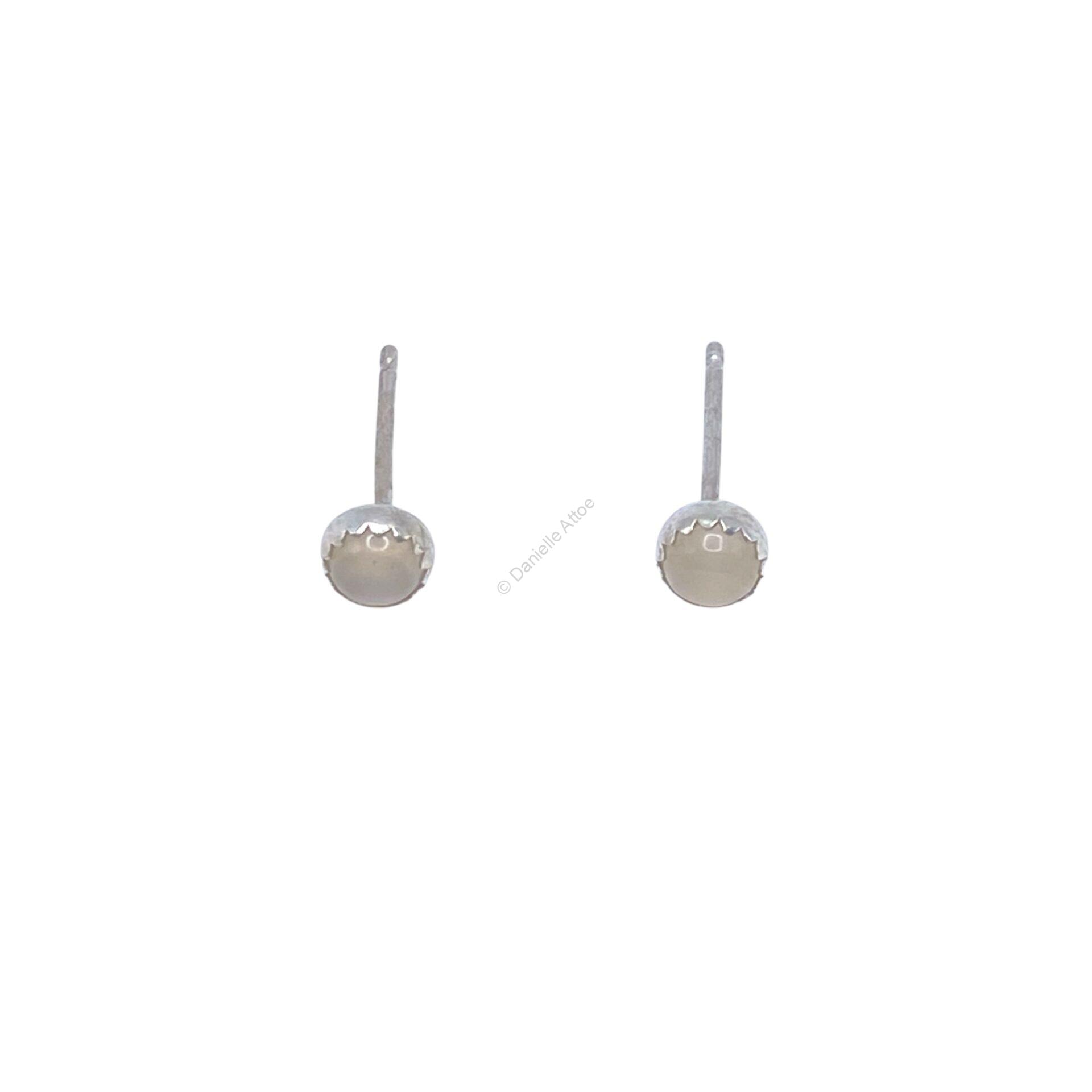 These are classic 4mm, round, moonstone post earrings made of sterling silver.