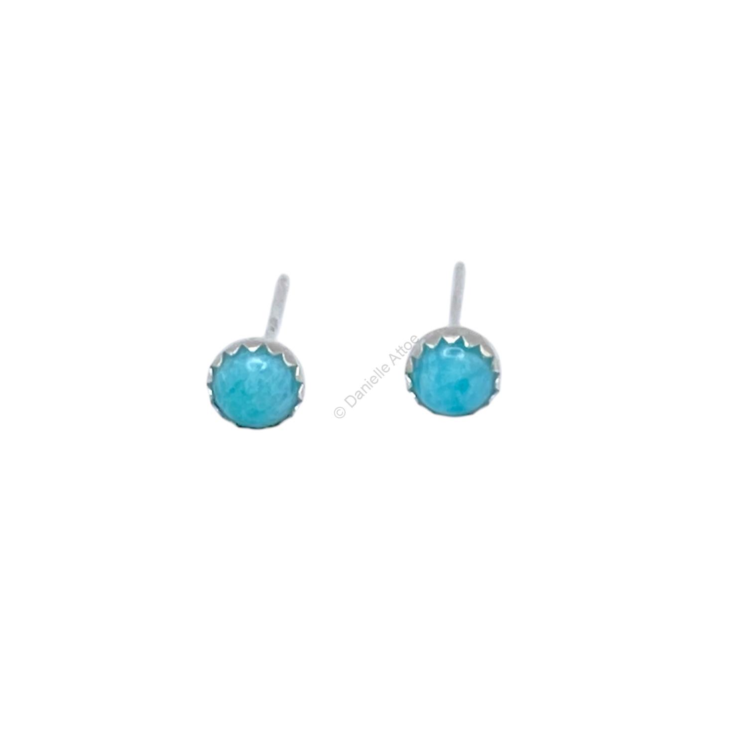 These are classic 5mm round amazonite post earrings made of sterling silver.