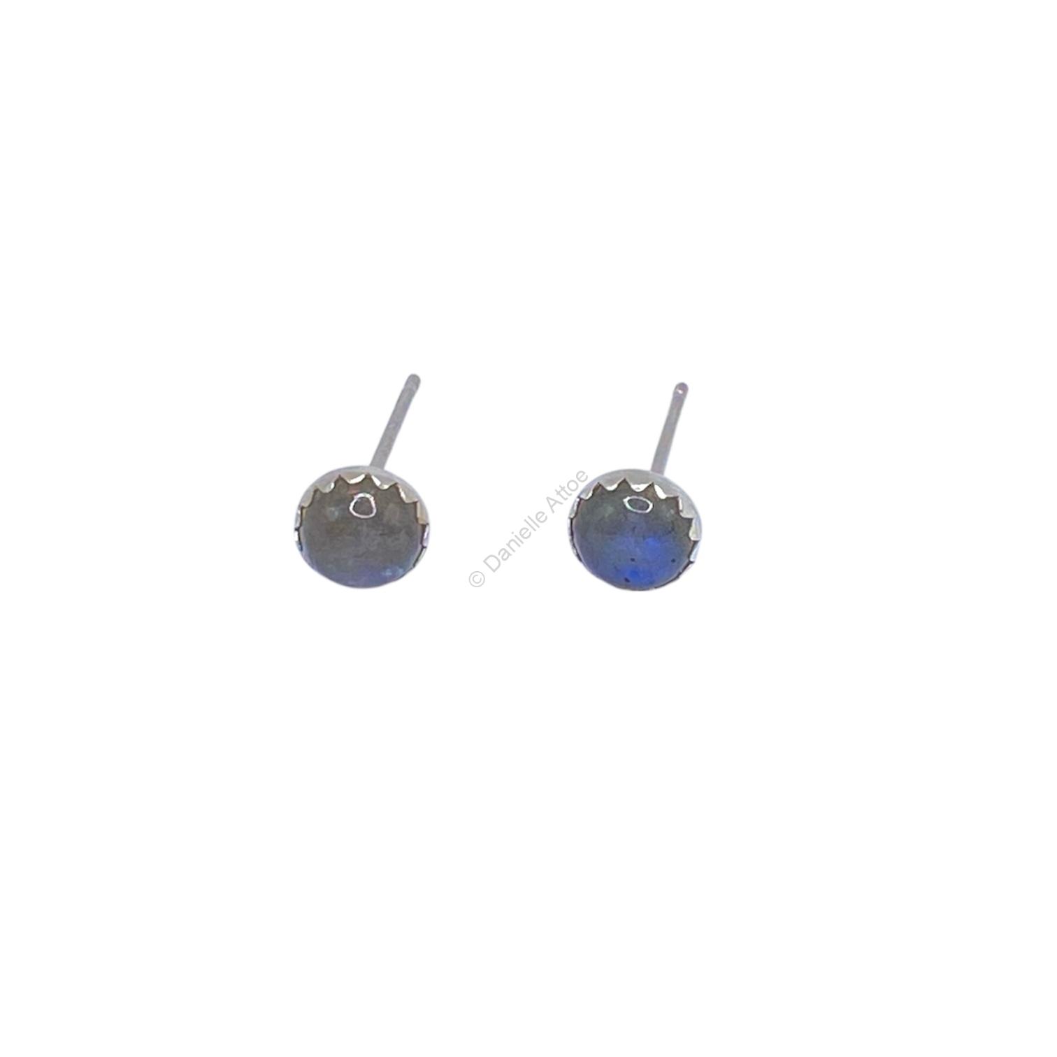 These are classic 6mm, round, labradorite post earrings made of sterling silver.
